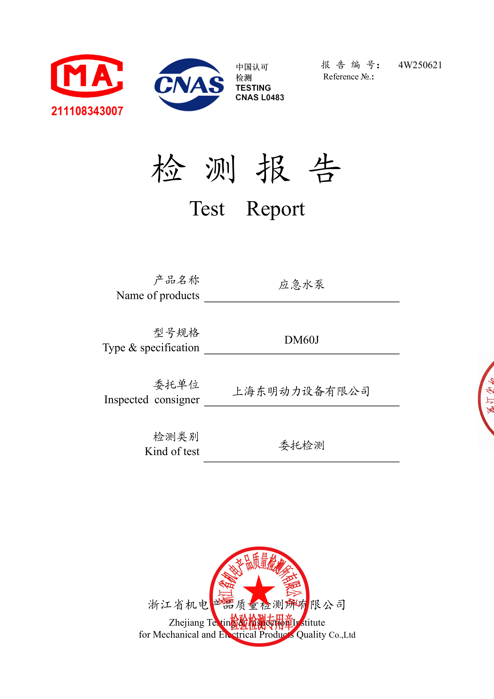 除了出色的性能表現(xiàn),上海東明 DM60YJ 汽油水泵還具備專業(yè)檢測報告,各項指標符合國家相關標準。從動力性能到安全防護,都經(jīng)過嚴格測試驗證,確保設備在應急使用中的安全性、可靠性和穩(wěn)定性。檢測報告的加持,也為用戶在政府采購、應急儲備等場景中提供了依據(jù)。