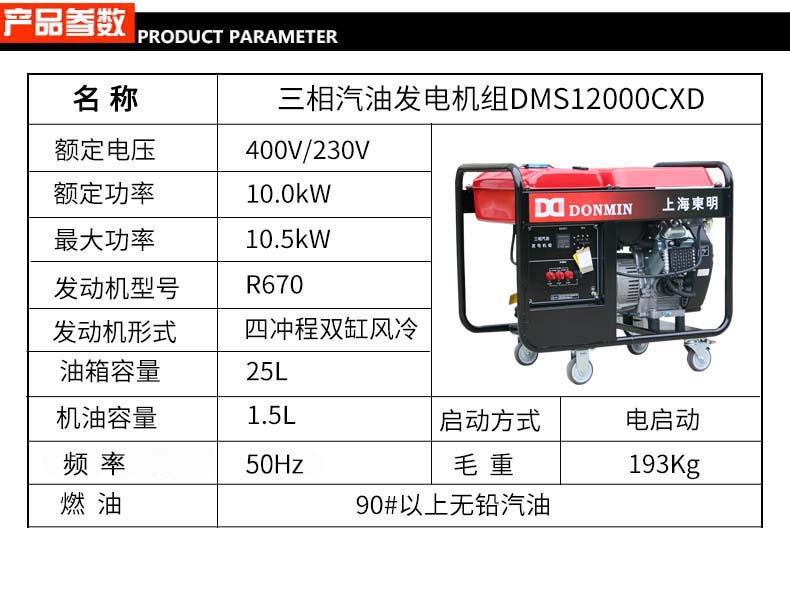 * 表示必填采購:10KW三相工程汽油發電機組 DMS12000CXD
