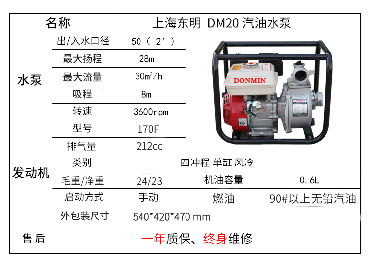 * 表示必填采購:2寸 (50)汽油動力自吸抽水泵DM20