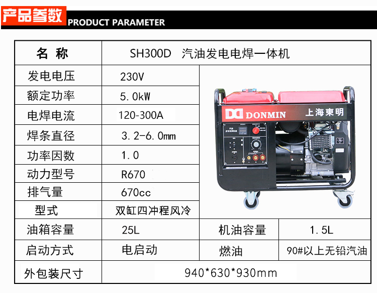 120-300A單相 5KW雙缸汽油發電電焊一體機SH300D