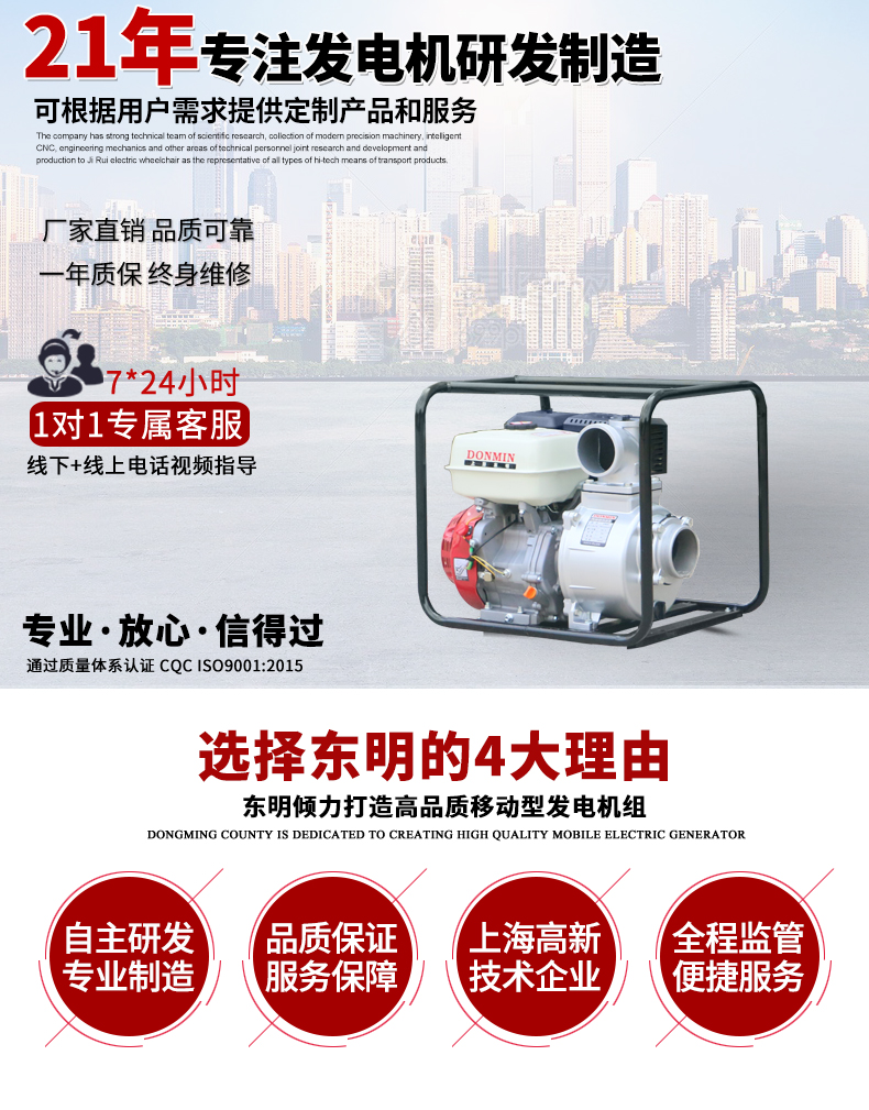 (2)鋁合金自吸泵體,鑄鐵葉輪+渦輪蓋,有效提高了水泵的耐久性。