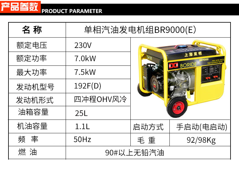 * 表示必填采購:單相7kW小型汽油發電機組 BR9000(E)