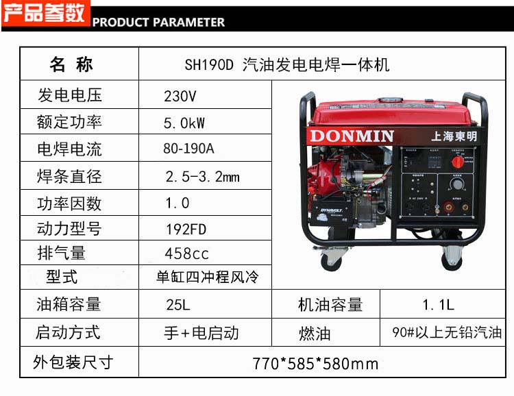 - 80-190A三相電動 5KW汽油發(fā)電電焊一體機(jī)SHS190D