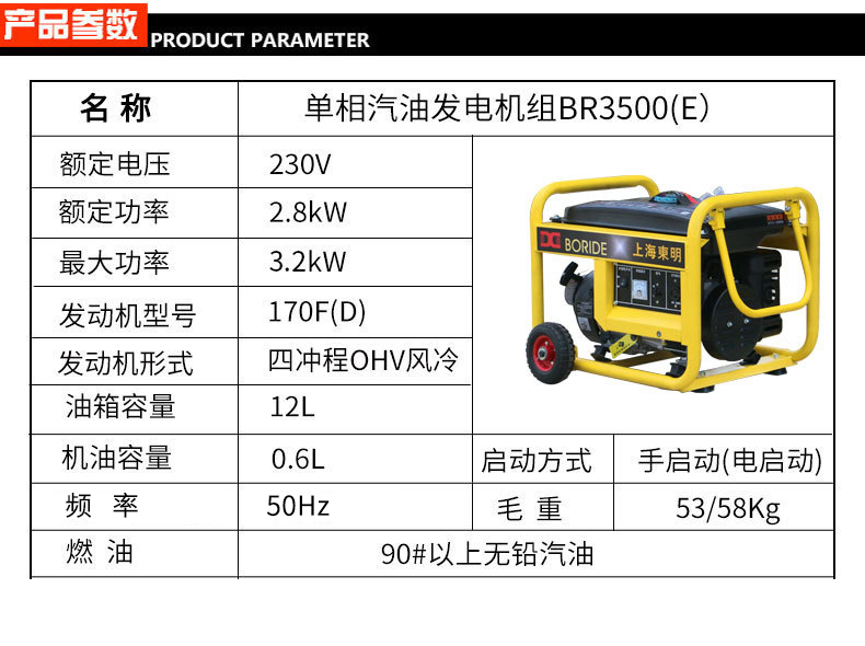 * 表示必填采購:單相3kW小型汽油發電機組 BR3500(E)