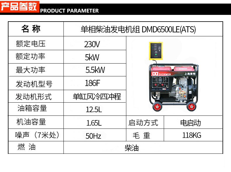 * 表示必填采購:冷鏈配套單相5kw無人值守ATS柴油發電機 DMD6500LE(ATS)