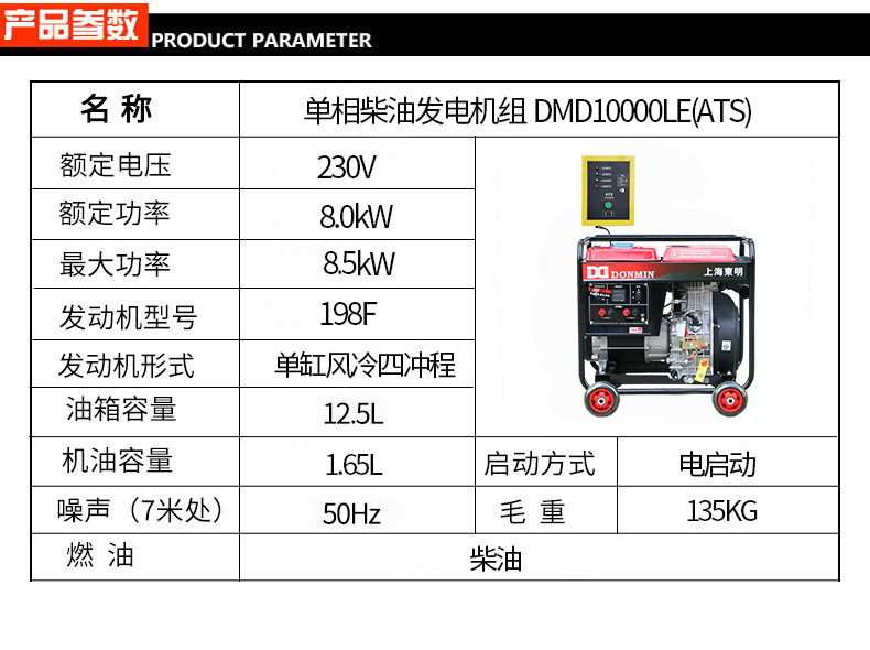 * 表示必填采購:冷鏈配套單相8kw無人值守ATS柴油發電機組DMD10000LE(ATS)