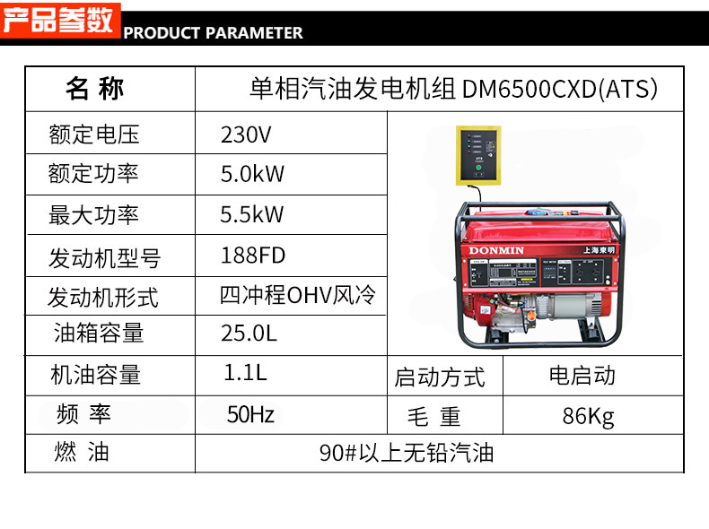 * 表示必填采購:冷鏈配套單相5kw無人值守ATS汽油發電機組 DM6500CXD(ATS)