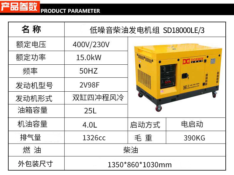 上海東明15kw低噪音柴油發(fā)電機(jī)SD18000LE/3