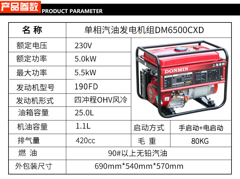* 表示必填采購:5KW單相小型汽油發電機組【可配備移動輪】DM6500CXD
