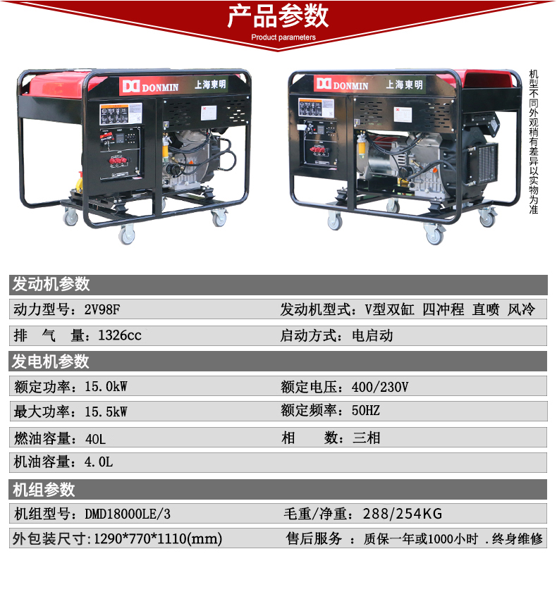 上海東明15KW 15000W柴油發電機組DMD18000LE/3