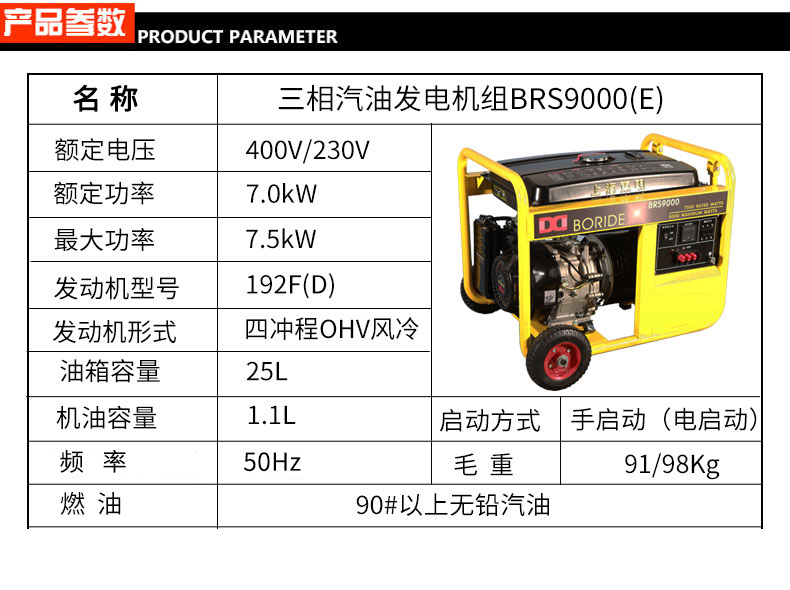 * 表示必填采購:三相7kW小型汽油發(fā)電機組 BRS9000(E)